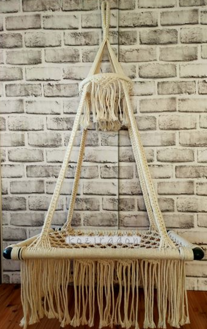 マクラメ編みと木材を組み合わせると、簡単に家具ができます。
