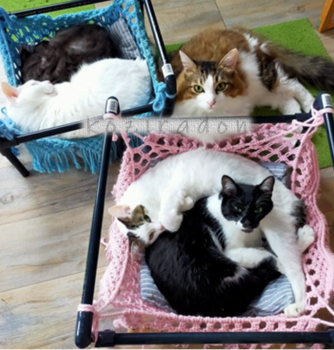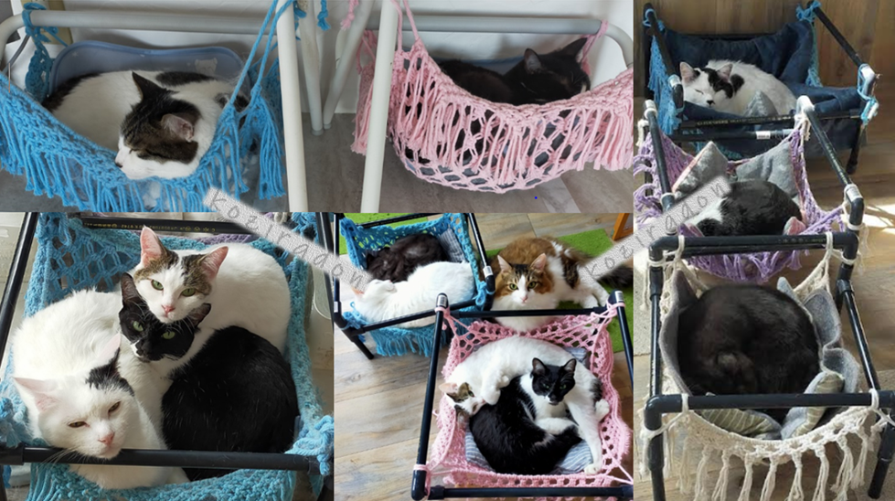2021年10月 フレーム付きハンモックを作ったら、我家の猫達に評判良くて奪い合い。