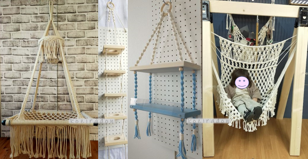 マクラメ編みと木材を組み合わせると、簡単に家具ができます。