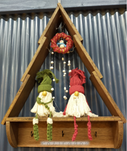 2021年12月 ワークショップで、マクラメ編みのサンタさんや飾り棚作りが好評となる。